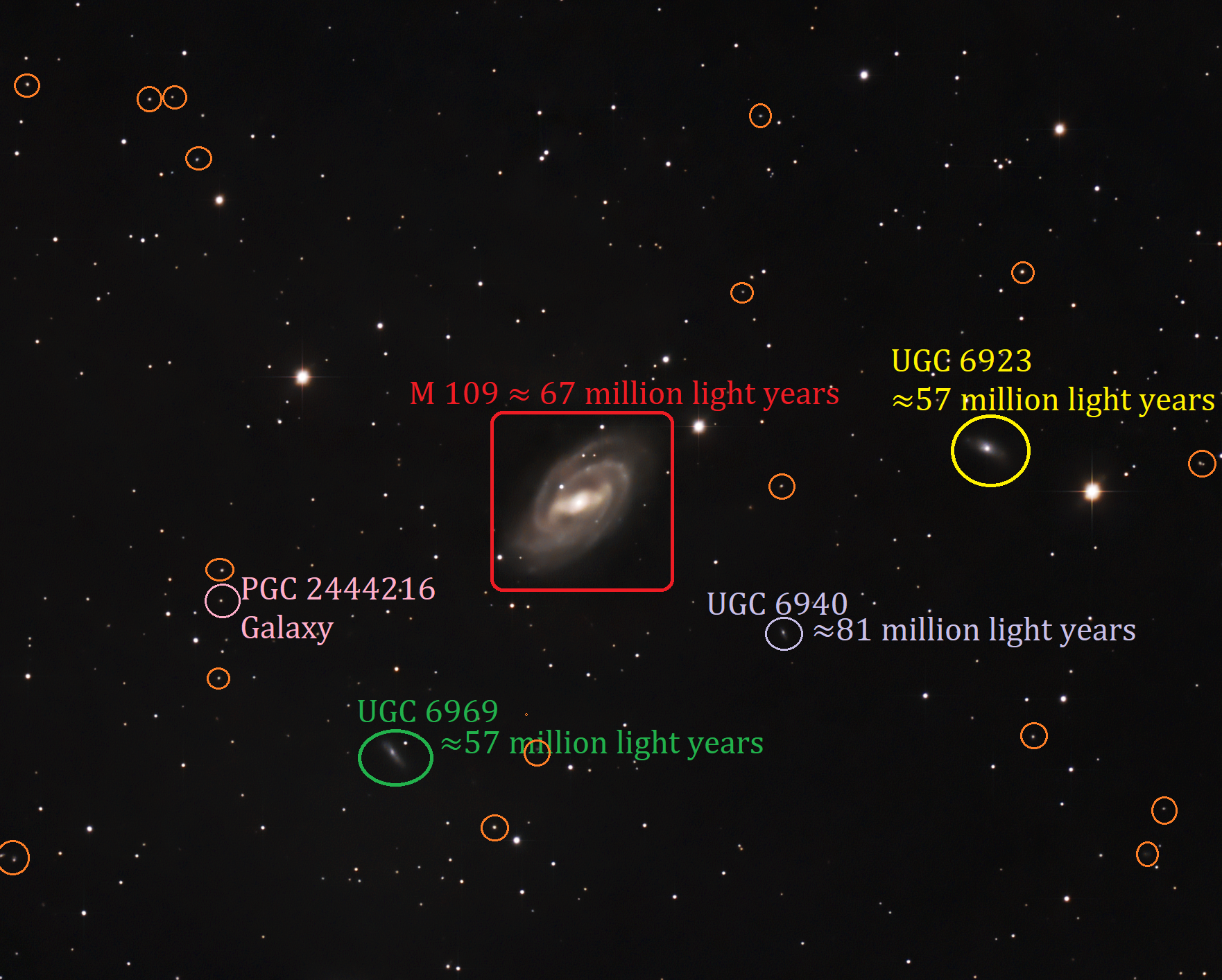M109 körülbelül 67 millió fényévnyire van tölünk